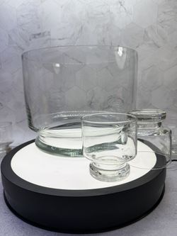(1) Beautiful Pebble Textured Glass Round Pillar Candle Holder/Candy dish. 8.5” Clear Disc Shaped Rim. Excellent Condition. Props not included. $25Austin, TX