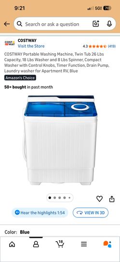 COSTWAY Portable Washing Machine, Twin Tub 26 Lbs Capacity, 18 Lbs Washer and 8 Lbs Spinner, Compact Washer with Control Knobs, Timer Function, Drain $149San Diego, CA