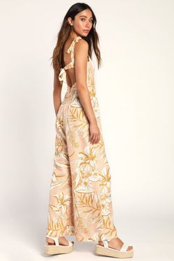 Lulus Tropical Beige Print Tie Strap jumpsuit size Médium $50San Diego, CA