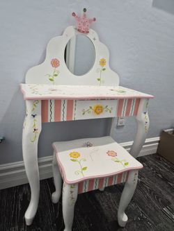 Fantasy Fields - Princess & Frog Kids Vanity Table and Stool Set , 1 drawer, Gift for Kids, White Pink, Crown$80Las Vegas, NV