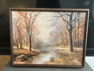Vintage Robert Wood Autumn Landscape – Framed Canvas Print 20x26 – 1956$100Wesley Chapel, FL