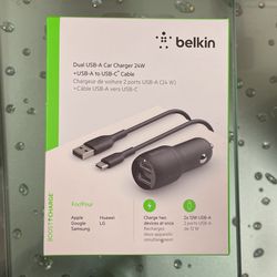 Belkin BOOST CHARGE Dual USB-A Car Charger, 24W + USB-A to USB-C Cable, Black$15Stevenson Ranch, CA
