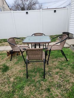 5 piece square indoor/outdoor patio table with rattan chairs set$75Oaklandon, IN