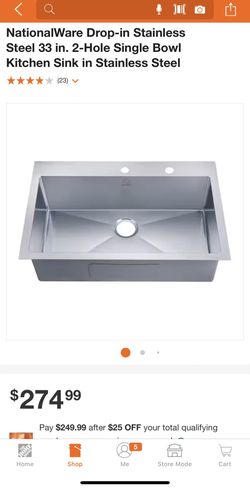 NationalWare Drop-in Stainless Steel 33 in. 2-Hole Single Bowl Kitchen Sink in Stainless Steel$80Fort Lauderdale, FL