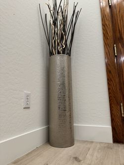 Vase With Sticks 5ft Tall ( 30” Tall Vase Only ) Silver Tall Cylinder Vase Pot / Home Decor$75Peoria, AZ