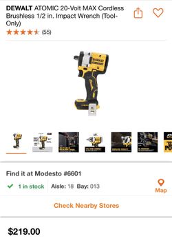 DEWALT ATOMIC 20-Volt MAX Cordless Brushless 1/2 in. Impact Wrench (Tool-Only)$165Modesto, CA