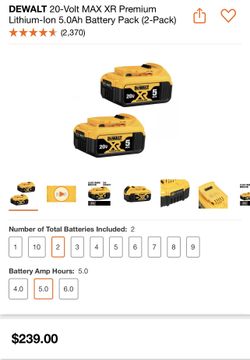 20-Volt MAX XR Premium Lithium-Ion 5.0Ah Battery Pack (2-Pack)$140Modesto, CA