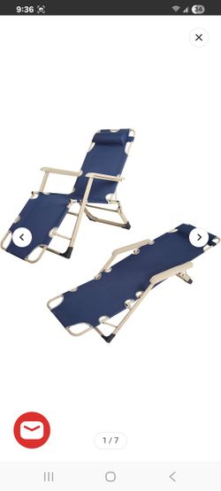 Set of 2 Outdoor Reclining Lawn Chairs Adjustable Folding Patio Recliners with Pillow, Dark Blue$50Arrowhed Farm, CA