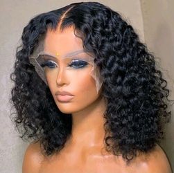 Curly Human Hair Short BOB Wigs Deep Wave Transparent PrePlucked Bleached Knots$130Covington, WA