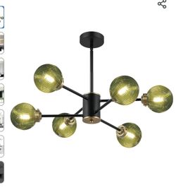New, Never Used, Mid-Century Modern Chandelier, 6-Light Pendant Light with Green Glass Globe Shade, Black Sputnik Chandelier, $50Charlotte, NC
