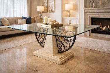 Modern Glass Dining Table w/ Stone & Iron Base – Seats 8–10$300Boca Raton, FL