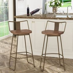 30" Swivel Bar Stools with Backs Metal Bar Height Stools Set of 2 Industrial Home Kitchen Bar Chairs with Wooden Seat Bronze$50Anaheim, CA
