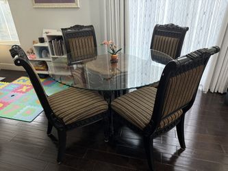 54” Round Glass Dining Table SET w/4 Solid Wood Chairs, $400 OBO$400Oceanside, CA