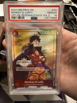 MONKEY D LUFFY P-001 OFFLINE REGIONALS PSA 10 GEM MINT, 2024 ONE PIECE CARD GAME$500San Diego, CA
