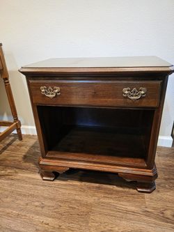 1970s Ethan Allen Georgian Court Collection Chippendale Cherry Nightstand With Drawer (11-5226)$50Puyallup, WA