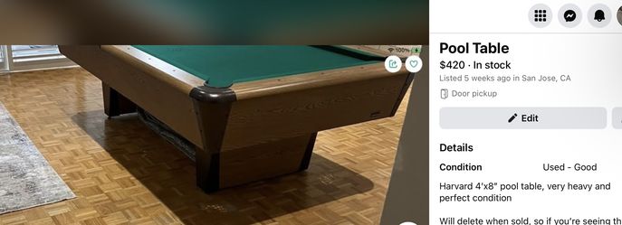 Pool Table 4’ X 8’ (only)$425San Jose, CA