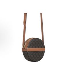 CELINE Triomphe Classic Full Print Old Flower Canvas Lambskin Round Cake Bag Coin Purse Crossbody Shoulder Bag(223)23 $520Maize, KS