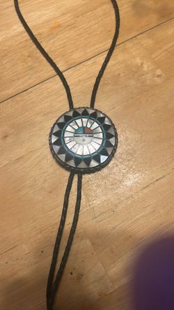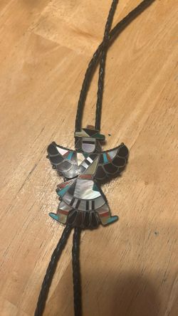 Large Zuni NATIVE AMERICAN SIGNED BENNETT THUNDERBIRD INLAY STONE BOLO TIE 3"$325Fort Lauderdale, FL