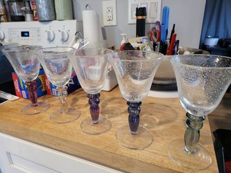Vintage Pottery Barn Bubble Effect Iridescent Stem Wine Glass Set $80Lynnwood, WA