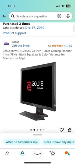 BenQ ZOWIE RL2455S 24 inch 1080p Gaming Monitor$35San Diego, CA