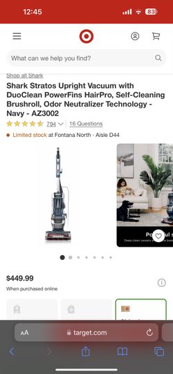 Shark Stratos Upright Vacuum with DuoClean PowerFins HairPro, Self-Cleaning Brushroll, Odor Neutralizer Technology - Navy - AZ3002$400Fontana, CA