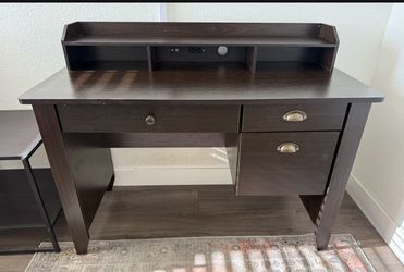 Home desk With Built In Outlets And USB Ports, Wood Grain Brown, Like New, Gently Used $105Santa Rosa Va, CA