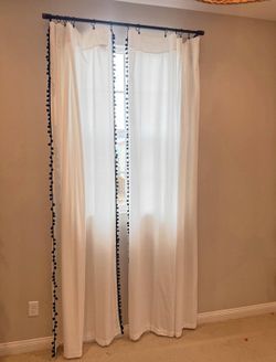 White curtains with black pom pom border 2 panels Only used for staging in model home$25Santa Rosa Va, CA