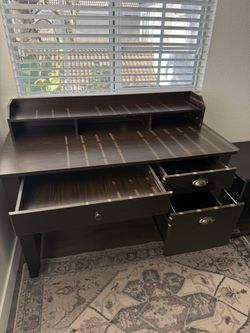 TWO Dark wood desk with multiple drawers and compartments. And phone + plug outlets installed $200Byron, CA