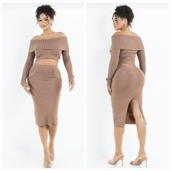 Brown Off Shoulder Knit Skirt Set$45Compton, CA