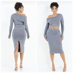 Grey Off Shoulder Knit Skirt Set$45Compton, CA