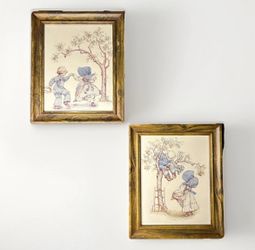 Vintage 1970s Holly Hobbie Framed Prints Pair Rustic Country Nursery Decor Set$50Las Vegas, NV