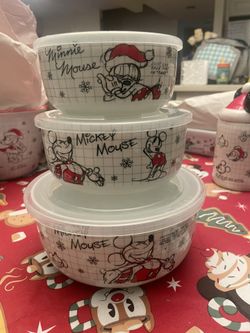 3 Disney Mickey Christmas Sketchbook Round Plastic Microwave Bowls w/Vent Lids$40Carson, CA