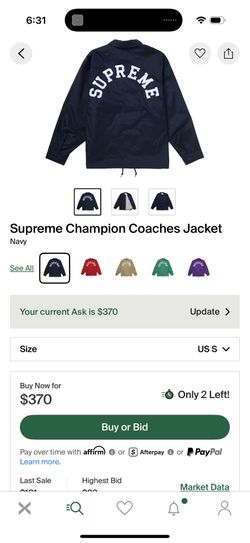 Supreme Champion Coaches Jacket Size Small$375Long Beach, CA
