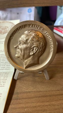 1965 Lyndon Baines Johnson US Treasury Bronze Inauguration Medal w/Stand.$29Santa Rosa, CA