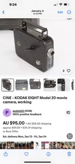 Kodak 8 Model 20 Movie Camera$60Durham, CT