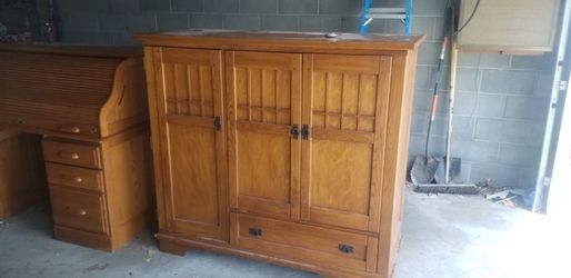 Vintage Real Oak Armoire Chest With tv Stand$50Allen Park, MI