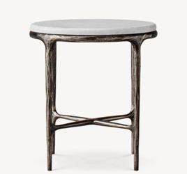 New RH Thaddeus Marble 20” Round Bedside Table in Italian Carerra Marble & Forged Iron$1,399Delray Beach, FL