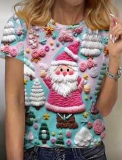 Christmas Santa Claus & Christmas Tree Full-Print Casual Round Neck Short Sleeve T-Shirt For Summer Graphic Tees Women$12Montclair, CA