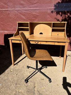 Beautiful wood desk with new rolling swivel chair 51” length 29”width & 4.5 height plenty of storage drawers good conditions$85Phoenix, AZ