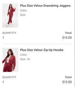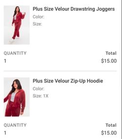 New Red Velour pants and hoodie from Forever 21$30South Gate, CA