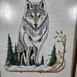 Wolf Hand Sewn Cross Stitch Framed Forest Nature Scene Wall Art 12.5" W X 14.5 H$30Parma, OH