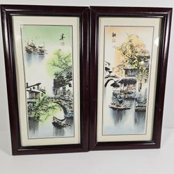 Lot of 2 Framed Chinese Brush Ink Watercolor Painting of Zhujiajiao China 13"x7$45Parma Heights, OH