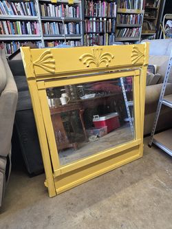 Beautiful vintage wood mirror with a yellow distressed finish & carved decorative header, no hanging hardware$20San Antonio, TX
