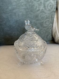 Hofbauer Byrdes Bird Finial Lead Crystal Covered Footed Dish$30Seal Beach, CA