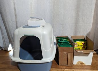 $254 BUNDLE. XL hooded cat litter tray 28 packs drawstring litter liners$50Fairfield, CA