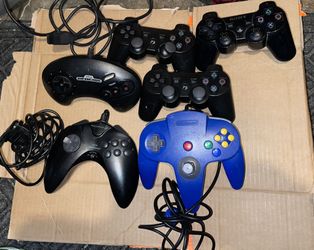 Mixed lot of 7 of various Vintage Video Game Controllers, Including Sega Mega Drive/Genesis and Nintendo 64. $45Cleveland Heights, OH