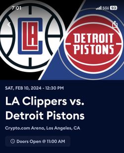 Clippers Vs Pistons (Suite LEVEL B61)$700Los Angeles, CA