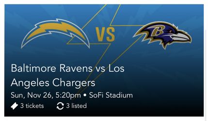 Charger Vs Ravens (Sunday Night Football)$84Los Angeles, CA