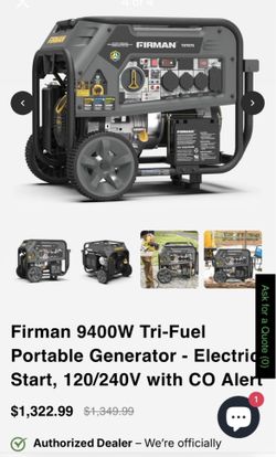 Firman 9400W Tri-Fuel Portable Generator - Electric Start, 120/240V with CO$475Columbus, OH