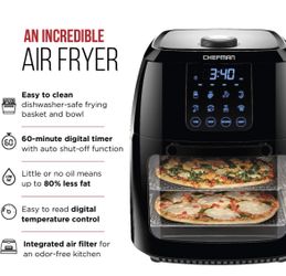 Chefman 6.3 Quart Digital Air Fryer+ Rotisserie, Dehydrator, Convection Oven, 8 Touch Screen Presets Fry, Roast, Dehydrate & Bake, BPA-Free, Auto Shut$80Cupertino, CA